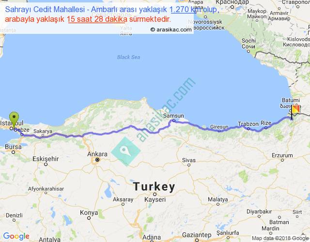 Sahrayı Cedit Mahallesi - Ambarlı arası yaklaşık olarak 90 km/h ile yukarıda belirtilen sürede olup, iki yerin kuş uçuşu uzaklığı (mesafesi) 1051'dir. Eğer belirtilen yerler arasında uçak seferi var ise bu süre uçakla 1 saat 37 dakika'ya kadar düşebilir. Yolculuk otobüsle 20 saat 6 dakika sürmektedir.