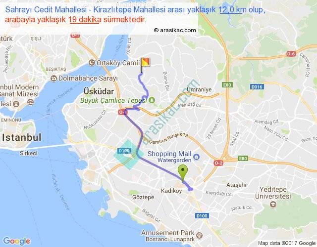 Eğer Sahrayı Cedit Mahallesi Kirazlıtepe Mahallesi arası ne kadar yakar (benzin/mazot) diyorsanız, kilometrede 3 ₺ yakan bir aracınız var ise 36, km'de 4 ₺ yakan bir aracınız var ise 48, km'de 5 ₺ yakan bir aracınız var ise 60 ile bu yolculuğu tamamlayabilirsiniz.
