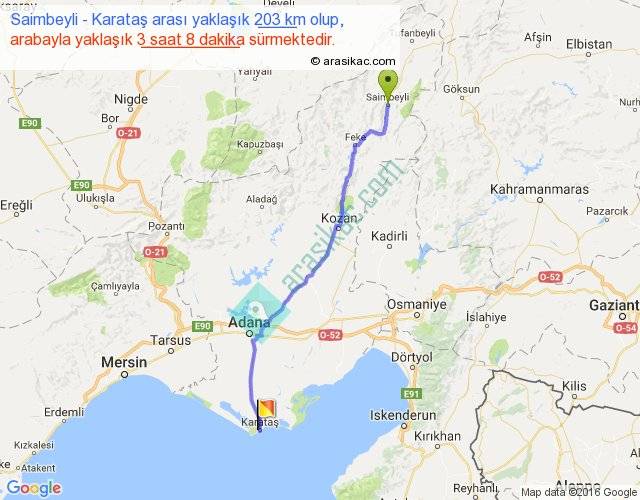 Eğer Saimbeyli Karataş arası ne kadar yakar (benzin/mazot) diyorsanız, kilometrede 3 ₺ yakan bir aracınız var ise 609, km'de 4 ₺ yakan bir aracınız var ise 812, km'de 5 ₺ yakan bir aracınız var ise 1015 ile bu yolculuğu tamamlayabilirsiniz.
