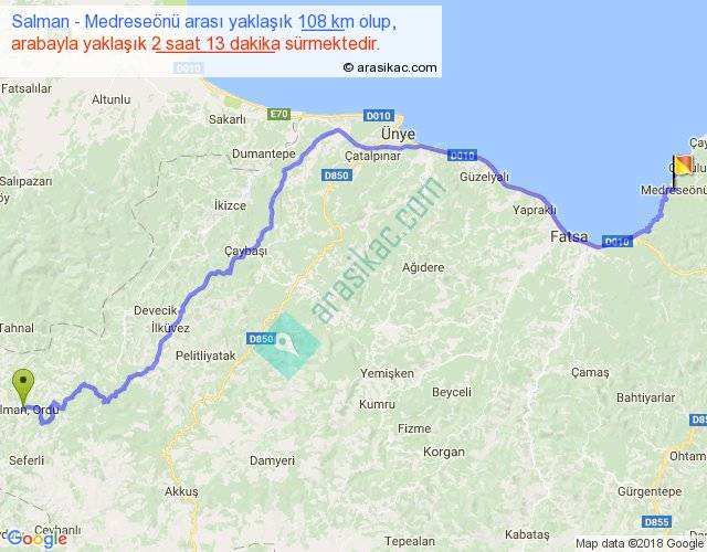 Salman - Medreseönü arası yaklaşık olarak 90 km/h ile yukarıda belirtilen sürede olup, iki yerin kuş uçuşu uzaklığı (mesafesi) 71'dir. Yolculuk otobüsle 2 saat 52 dakika sürmektedir.