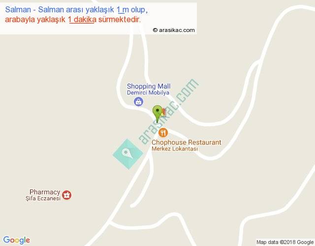 Salman - Salman arası yaklaşık olarak 90 km/h ile yukarıda belirtilen sürede olup, iki yerin kuş uçuşu uzaklığı (mesafesi) 0'dir. Yolculuk otobüsle 1 dakika sürmektedir.