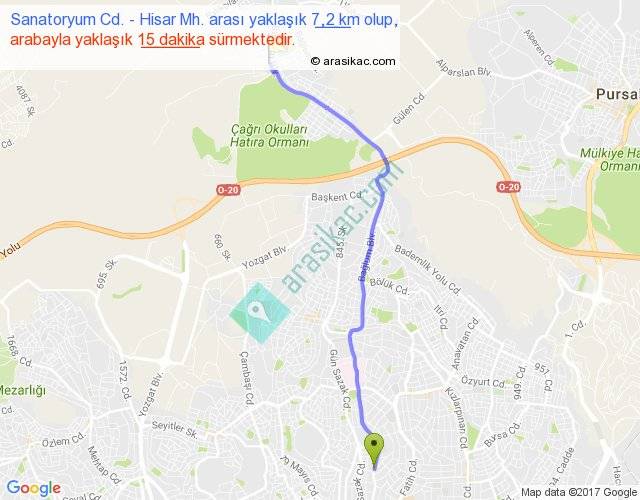 Sanatoryum Cd. - Hisar Mh. arası detaylı bilgi