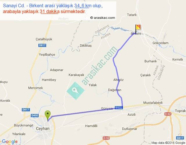 Sanayi Cd. - Birkent arası yaklaşık olarak 90 km/h ile yukarıda belirtilen sürede olup, iki yerin kuş uçuşu uzaklığı (mesafesi) 26'dir. Yolculuk otobüsle 40 dakika sürmektedir.