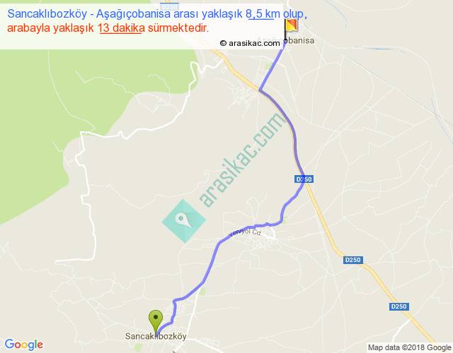 Sancaklıbozköy - Aşağıçobanisa arası yaklaşık olarak 90 km/h ile yukarıda belirtilen sürede olup, iki yerin kuş uçuşu uzaklığı (mesafesi) 7'dir. Yolculuk otobüsle 16 dakika sürmektedir.