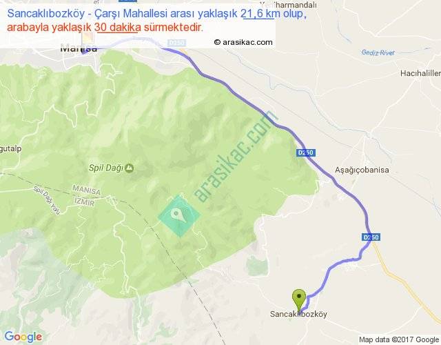Sancaklıbozköy - Çarşı Mahallesi arası yaklaşık olarak 90 km/h ile yukarıda belirtilen sürede olup, iki yerin kuş uçuşu uzaklığı (mesafesi) 15'dir. Yolculuk otobüsle 39 dakika sürmektedir.