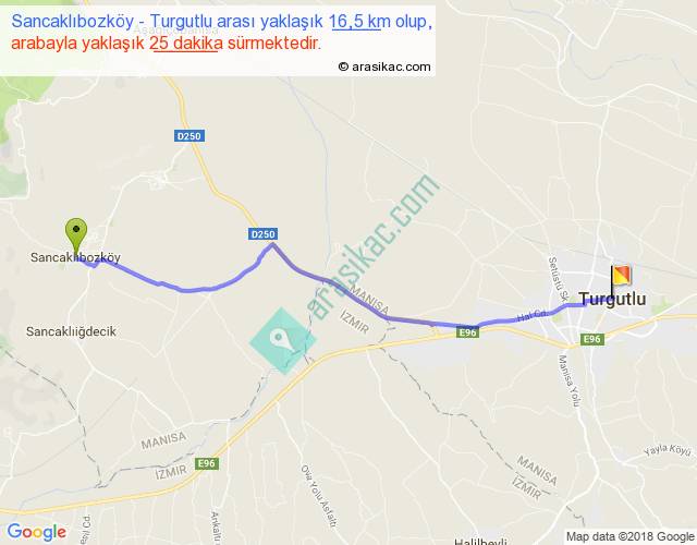 Sancaklıbozköy - Turgutlu arası yaklaşık olarak 90 km/h ile yukarıda belirtilen sürede olup, iki yerin kuş uçuşu uzaklığı (mesafesi) 15'dir. Yolculuk otobüsle 32 dakika sürmektedir.