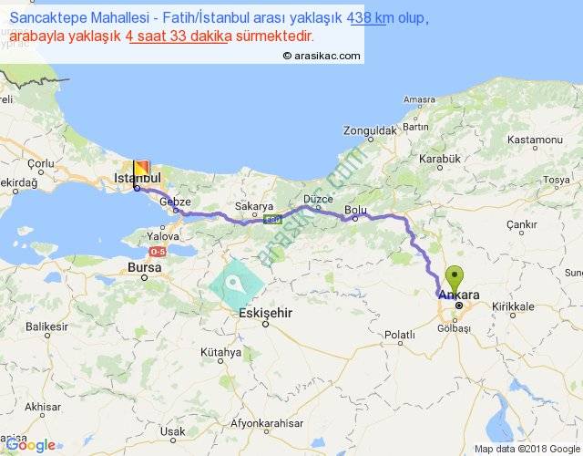 Sancaktepe Mahallesi - Fatih İstanbul arası yaklaşık olarak 90 km/h ile yukarıda belirtilen sürede olup, iki yerin kuş uçuşu uzaklığı (mesafesi) 344'dir. Eğer belirtilen yerler arasında uçak seferi var ise bu süre uçakla 31 dakika'ya kadar düşebilir. Yolculuk otobüsle 5 saat 54 dakika sürmektedir.