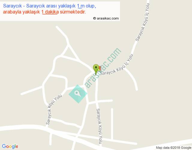 Saraycık - Saraycık arası yaklaşık olarak 90 km/h ile yukarıda belirtilen sürede olup, iki yerin kuş uçuşu uzaklığı (mesafesi) 0'dir. Yolculuk otobüsle 1 dakika sürmektedir.