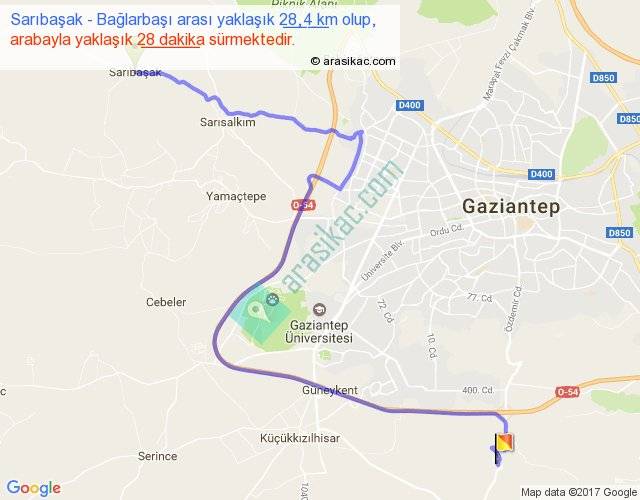 Sarıbaşak - Bağlarbaşı arası yaklaşık olarak 90 km/h ile yukarıda belirtilen sürede olup, iki yerin kuş uçuşu uzaklığı (mesafesi) 16'dir. Yolculuk otobüsle 36 dakika sürmektedir.