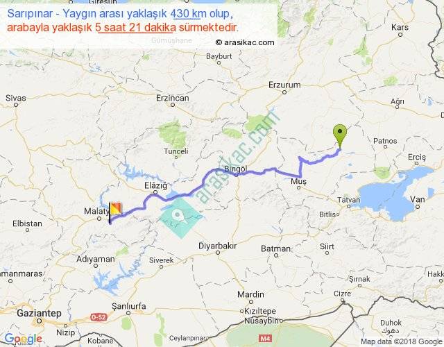 Sarıpınar - Yaygın arası yaklaşık olarak 90 km/h ile yukarıda belirtilen sürede olup, iki yerin kuş uçuşu uzaklığı (mesafesi) 329'dir. Eğer belirtilen yerler arasında uçak seferi var ise bu süre uçakla 30 dakika'ya kadar düşebilir. Yolculuk otobüsle 6 saat 57 dakika sürmektedir.