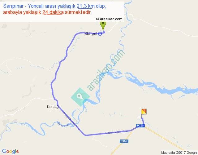 Eğer Sarıpınar Yoncalı arası ne kadar yakar (benzin/mazot) diyorsanız, kilometrede 3 ₺ yakan bir aracınız var ise 63, km'de 4 ₺ yakan bir aracınız var ise 84, km'de 5 ₺ yakan bir aracınız var ise 105 ile bu yolculuğu tamamlayabilirsiniz.