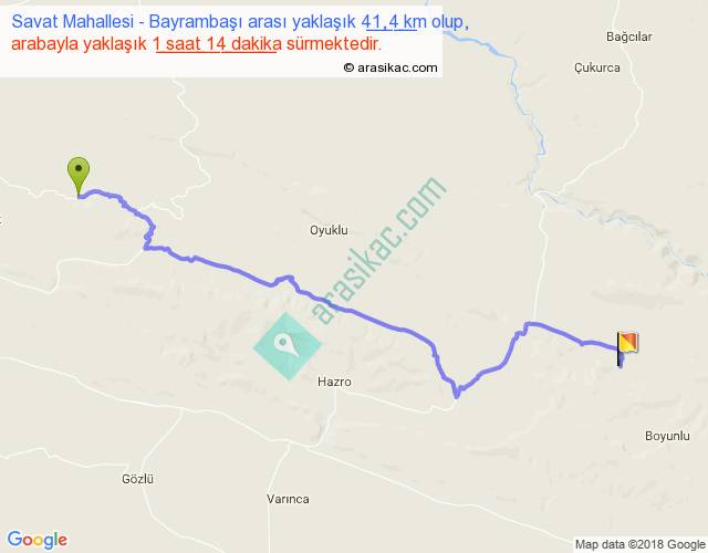Savat Mahallesi - Bayrambaşı arası yaklaşık olarak 90 km/h ile yukarıda belirtilen sürede olup, iki yerin kuş uçuşu uzaklığı (mesafesi) 31'dir. Yolculuk otobüsle 1 saat 36 dakika sürmektedir.