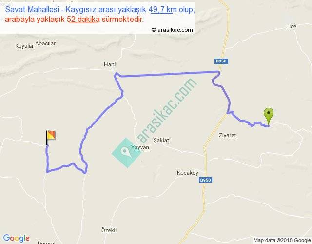 Savat Mahallesi - Kaygısız arası yaklaşık olarak 90 km/h ile yukarıda belirtilen sürede olup, iki yerin kuş uçuşu uzaklığı (mesafesi) 27'dir. Yolculuk otobüsle 1 saat 7 dakika sürmektedir.