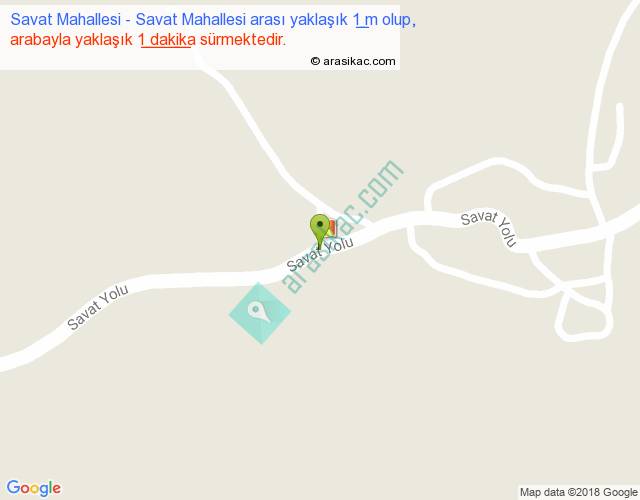 Savat Mahallesi - Savat Mahallesi arası yaklaşık olarak 90 km/h ile yukarıda belirtilen sürede olup, iki yerin kuş uçuşu uzaklığı (mesafesi) 0'dir. Yolculuk otobüsle 1 dakika sürmektedir.