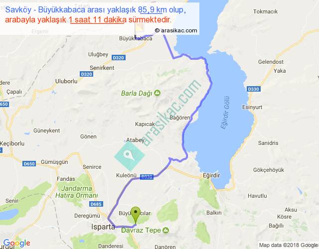 Savköy - Büyükkabaca arası yaklaşık olarak 90 km/h ile yukarıda belirtilen sürede olup, iki yerin kuş uçuşu uzaklığı (mesafesi) 45'dir. Yolculuk otobüsle 1 saat 32 dakika sürmektedir.