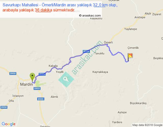 Savurkapı Mahallesi - Ömerli Mardin arası yaklaşık olarak 90 km/h ile yukarıda belirtilen sürede olup, iki yerin kuş uçuşu uzaklığı (mesafesi) 23'dir. Yolculuk otobüsle 46 dakika sürmektedir.
