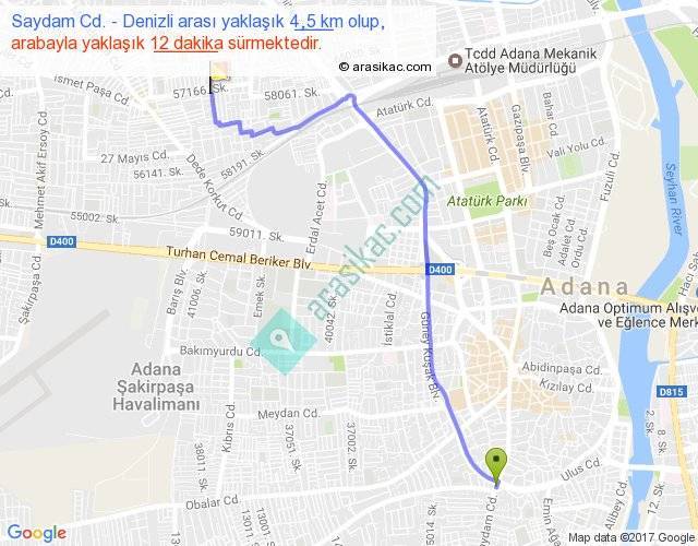 Saydam Cd. - Denizli arası yaklaşık olarak 90 km/h ile yukarıda belirtilen sürede olup, iki yerin kuş uçuşu uzaklığı (mesafesi) 3'dir. Yolculuk otobüsle 15 dakika sürmektedir.