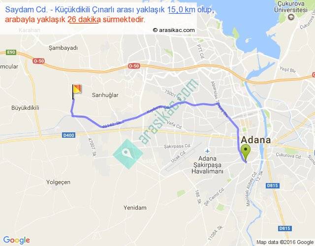 Saydam Cd. - Küçükdikili Çınarlı arası yaklaşık olarak 90 km/h ile yukarıda belirtilen sürede olup, iki yerin kuş uçuşu uzaklığı (mesafesi) 11'dir. Yolculuk otobüsle 33 dakika sürmektedir.