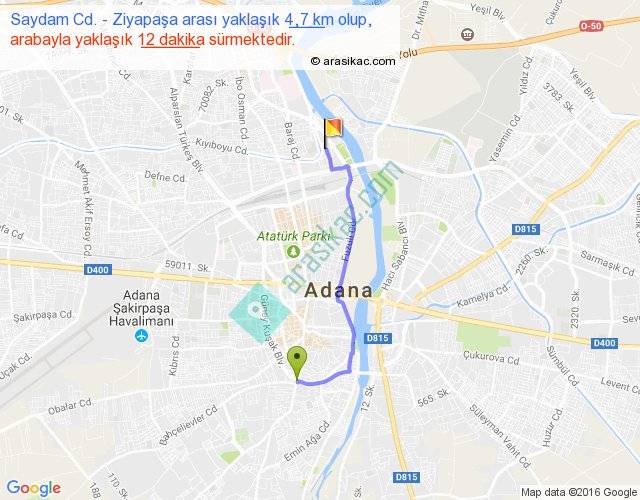 Saydam Cd. - Ziyapaşa arası yaklaşık olarak 90 km/h ile yukarıda belirtilen sürede olup, iki yerin kuş uçuşu uzaklığı (mesafesi) 4'dir. Yolculuk otobüsle 15 dakika sürmektedir.