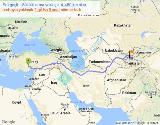 Sazgeçit - Sülüklü arası yaklaşık olarak 90 km/h ile yukarıda belirtilen sürede olup, iki yerin kuş uçuşu uzaklığı (mesafesi) 3062'dir. Eğer belirtilen yerler arasında uçak seferi var ise bu süre uçakla 4 saat 42 dakika'ya kadar düşebilir. Yolculuk otobüsle 2 gün 22 saat sürmektedir.