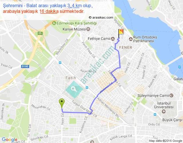 Şehremini - Balat arası yaklaşık olarak 90 km/h ile yukarıda belirtilen sürede olup, iki yerin kuş uçuşu uzaklığı (mesafesi) 2'dir. Yolculuk otobüsle 20 dakika sürmektedir.
