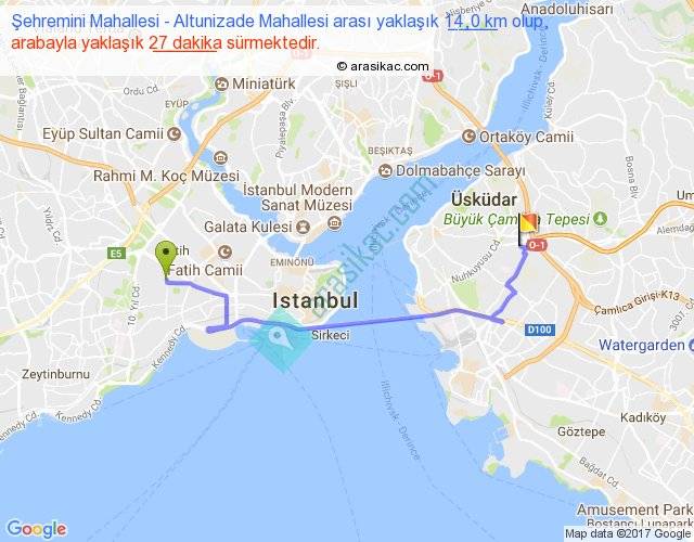 Eğer Şehremini Mahallesi Altunizade Mahallesi arası ne kadar yakar (benzin/mazot) diyorsanız, kilometrede 3 ₺ yakan bir aracınız var ise 42, km'de 4 ₺ yakan bir aracınız var ise 56, km'de 5 ₺ yakan bir aracınız var ise 70 ile bu yolculuğu tamamlayabilirsiniz.