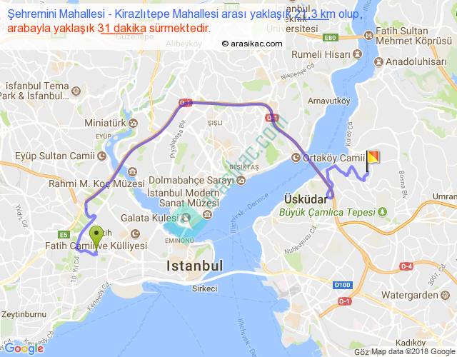 Eğer Şehremini Mahallesi Kirazlıtepe Mahallesi arası ne kadar yakar (benzin/mazot) diyorsanız, kilometrede 3 ₺ yakan bir aracınız var ise 63, km'de 4 ₺ yakan bir aracınız var ise 84, km'de 5 ₺ yakan bir aracınız var ise 105 ile bu yolculuğu tamamlayabilirsiniz.