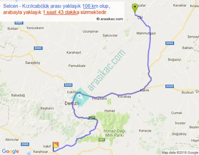 Selcen - Kızılcabölük arası yaklaşık olarak 90 km/h ile yukarıda belirtilen sürede olup, iki yerin kuş uçuşu uzaklığı (mesafesi) 61'dir. Yolculuk otobüsle 2 saat 13 dakika sürmektedir.
