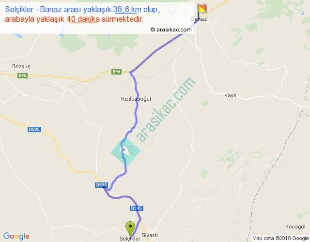 Selçikler - Banaz arası yaklaşık olarak 90 km/h ile yukarıda belirtilen sürede olup, iki yerin kuş uçuşu uzaklığı (mesafesi) 28'dir. Yolculuk otobüsle 52 dakika sürmektedir.