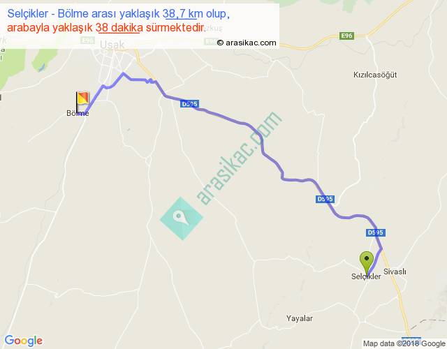 Selçikler - Bölme arası yaklaşık olarak 90 km/h ile yukarıda belirtilen sürede olup, iki yerin kuş uçuşu uzaklığı (mesafesi) 28'dir. Yolculuk otobüsle 49 dakika sürmektedir.