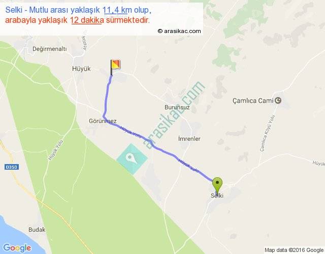 Selki - Mutlu arası yaklaşık olarak 90 km/h ile yukarıda belirtilen sürede olup, iki yerin kuş uçuşu uzaklığı (mesafesi) 9'dir. Yolculuk otobüsle 15 dakika sürmektedir.