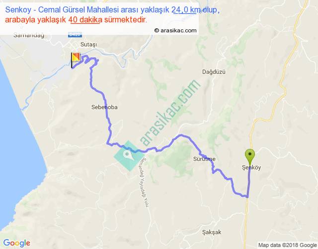 Senkoy - Cemal Gürsel Mahallesi arası yaklaşık olarak 90 km/h ile yukarıda belirtilen sürede olup, iki yerin kuş uçuşu uzaklığı (mesafesi) 13'dir. Yolculuk otobüsle 52 dakika sürmektedir.