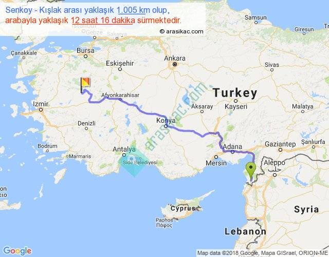 Senkoy - Kışlak arası yaklaşık olarak 90 km/h ile yukarıda belirtilen sürede olup, iki yerin kuş uçuşu uzaklığı (mesafesi) 712'dir. Eğer belirtilen yerler arasında uçak seferi var ise bu süre uçakla 1 saat 05 dakika'ya kadar düşebilir. Yolculuk otobüsle 15 saat 56 dakika sürmektedir.