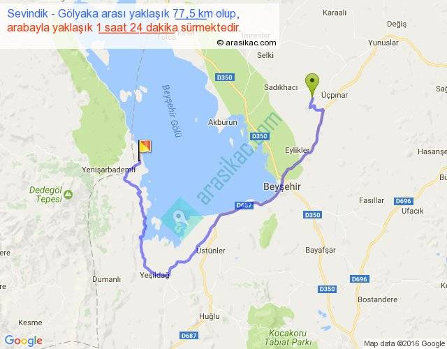 Sevindik - Gölyaka arası yaklaşık olarak 90 km/h ile yukarıda belirtilen sürede olup, iki yerin kuş uçuşu uzaklığı (mesafesi) 32'dir. Yolculuk otobüsle 1 saat 49 dakika sürmektedir.