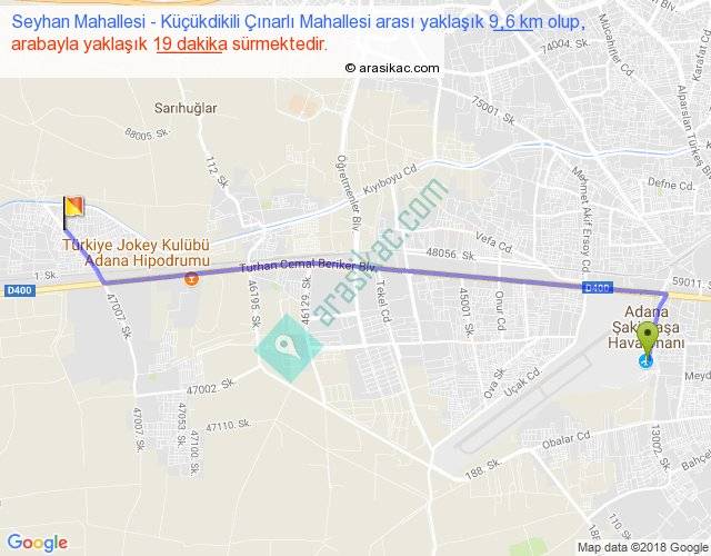 Seyhan Mahallesi - Küçükdikili Çınarlı Mahallesi arası yaklaşık olarak 90 km/h ile yukarıda belirtilen sürede olup, iki yerin kuş uçuşu uzaklığı (mesafesi) 8'dir. Yolculuk otobüsle 24 dakika sürmektedir.