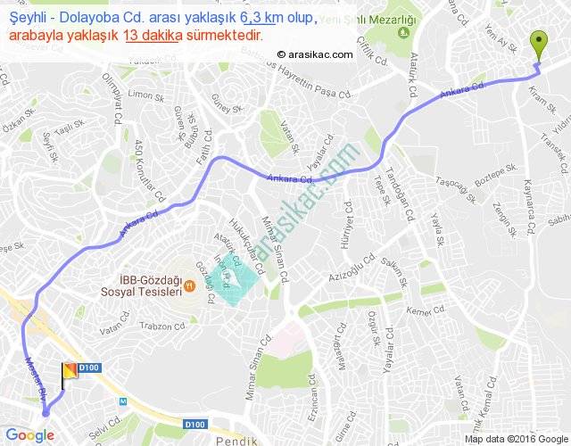 Eğer Şeyhli Dolayoba Cd. arası ne kadar yakar (benzin/mazot) diyorsanız, kilometrede 3 ₺ yakan bir aracınız var ise 18, km'de 4 ₺ yakan bir aracınız var ise 24, km'de 5 ₺ yakan bir aracınız var ise 30 ile bu yolculuğu tamamlayabilirsiniz.