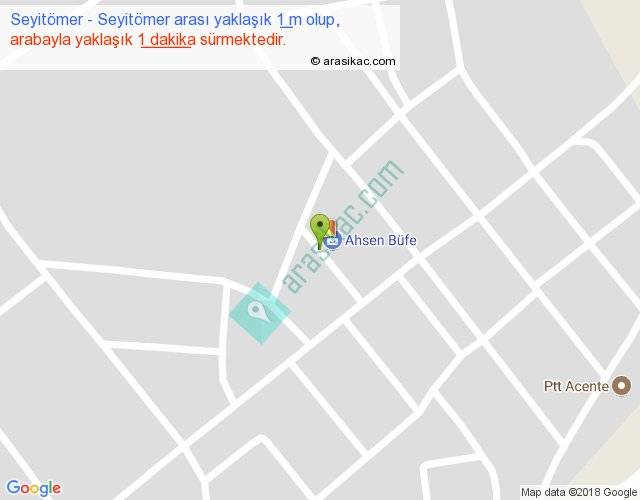 Seyitömer - Seyitömer arası yaklaşık olarak 90 km/h ile yukarıda belirtilen sürede olup, iki yerin kuş uçuşu uzaklığı (mesafesi) 0'dir. Yolculuk otobüsle 1 dakika sürmektedir.