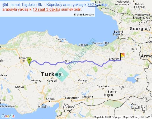 Eğer Şht. İsmail Taşdelen Sk. Köprüköy arası ne kadar yakar (benzin/mazot) diyorsanız, kilometrede 3 ₺ yakan bir aracınız var ise 2676, km'de 4 ₺ yakan bir aracınız var ise 3568, km'de 5 ₺ yakan bir aracınız var ise 4460 ile bu yolculuğu tamamlayabilirsiniz.