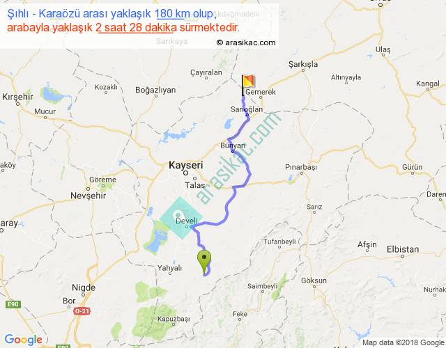 Şıhlı - Karaözü arası yaklaşık olarak 90 km/h ile yukarıda belirtilen sürede olup, iki yerin kuş uçuşu uzaklığı (mesafesi) 125'dir. Yolculuk otobüsle 3 saat 12 dakika sürmektedir.