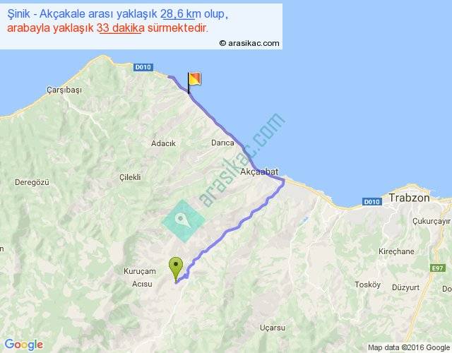 Şinik - Akçakale arası yaklaşık olarak 90 km/h ile yukarıda belirtilen sürede olup, iki yerin kuş uçuşu uzaklığı (mesafesi) 15'dir. Yolculuk otobüsle 42 dakika sürmektedir.