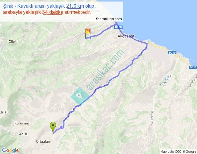 Şinik - Kavaklı arası yaklaşık olarak 90 km/h ile yukarıda belirtilen sürede olup, iki yerin kuş uçuşu uzaklığı (mesafesi) 9'dir. Yolculuk otobüsle 44 dakika sürmektedir.