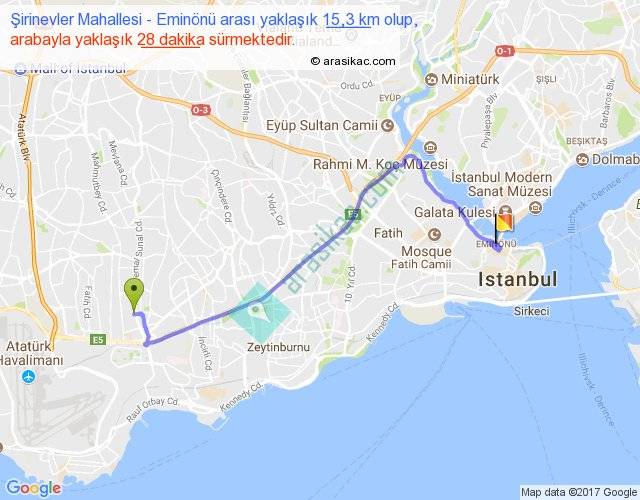 Eğer Şirinevler Mahallesi Eminönü arası ne kadar yakar (benzin/mazot) diyorsanız, kilometrede 3 ₺ yakan bir aracınız var ise 45, km'de 4 ₺ yakan bir aracınız var ise 60, km'de 5 ₺ yakan bir aracınız var ise 75 ile bu yolculuğu tamamlayabilirsiniz.
