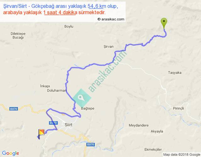 Şirvan Siirt - Gökçebağ arası yaklaşık olarak 90 km/h ile yukarıda belirtilen sürede olup, iki yerin kuş uçuşu uzaklığı (mesafesi) 32'dir. Yolculuk otobüsle 1 saat 23 dakika sürmektedir.