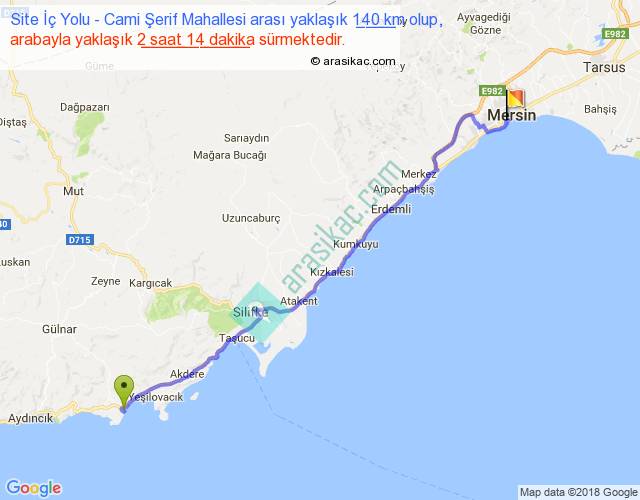 Site İç Yolu - Cami Şerif Mahallesi arası yaklaşık olarak 90 km/h ile yukarıda belirtilen sürede olup, iki yerin kuş uçuşu uzaklığı (mesafesi) 118'dir. Yolculuk otobüsle 2 saat 54 dakika sürmektedir.