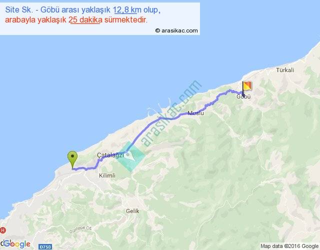Site Sk. - Göbü arası yaklaşık olarak 90 km/h ile yukarıda belirtilen sürede olup, iki yerin kuş uçuşu uzaklığı (mesafesi) 11'dir. Yolculuk otobüsle 32 dakika sürmektedir.