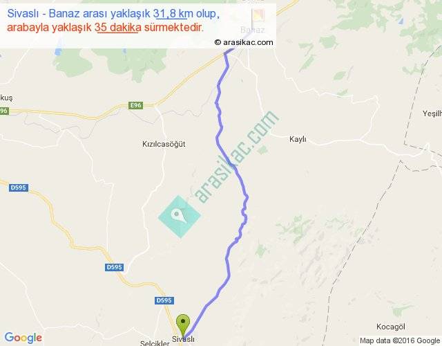 Sivaslı - Banaz arası yaklaşık olarak 90 km/h ile yukarıda belirtilen sürede olup, iki yerin kuş uçuşu uzaklığı (mesafesi) 27'dir. Yolculuk otobüsle 45 dakika sürmektedir.