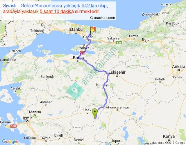 Eğer Sivaslı Gebze Kocaeli arası ne kadar yakar (benzin/mazot) diyorsanız, kilometrede 3 ₺ yakan bir aracınız var ise 1326, km'de 4 ₺ yakan bir aracınız var ise 1768, km'de 5 ₺ yakan bir aracınız var ise 2210 ile bu yolculuğu tamamlayabilirsiniz.