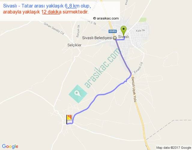 Sivaslı - Tatar arası yaklaşık olarak 90 km/h ile yukarıda belirtilen sürede olup, iki yerin kuş uçuşu uzaklığı (mesafesi) 5'dir. Yolculuk otobüsle 15 dakika sürmektedir.