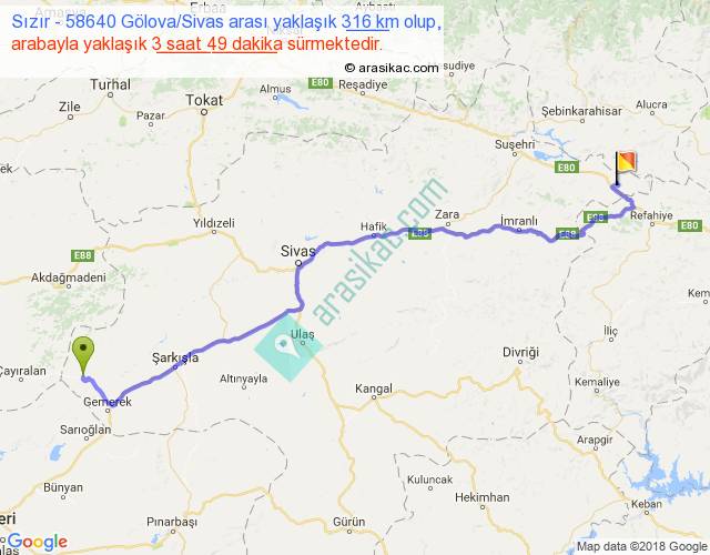 Eğer Sızır 58640 Gölova Sivas arası ne kadar yakar (benzin/mazot) diyorsanız, kilometrede 3 ₺ yakan bir aracınız var ise 948, km'de 4 ₺ yakan bir aracınız var ise 1264, km'de 5 ₺ yakan bir aracınız var ise 1580 ile bu yolculuğu tamamlayabilirsiniz.