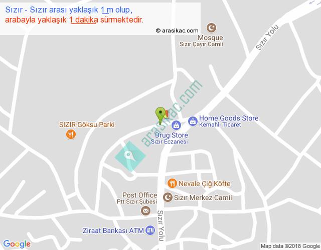 Sızır - Sızır arası yaklaşık olarak 90 km/h ile yukarıda belirtilen sürede olup, iki yerin kuş uçuşu uzaklığı (mesafesi) 0'dir. Yolculuk otobüsle 1 dakika sürmektedir.